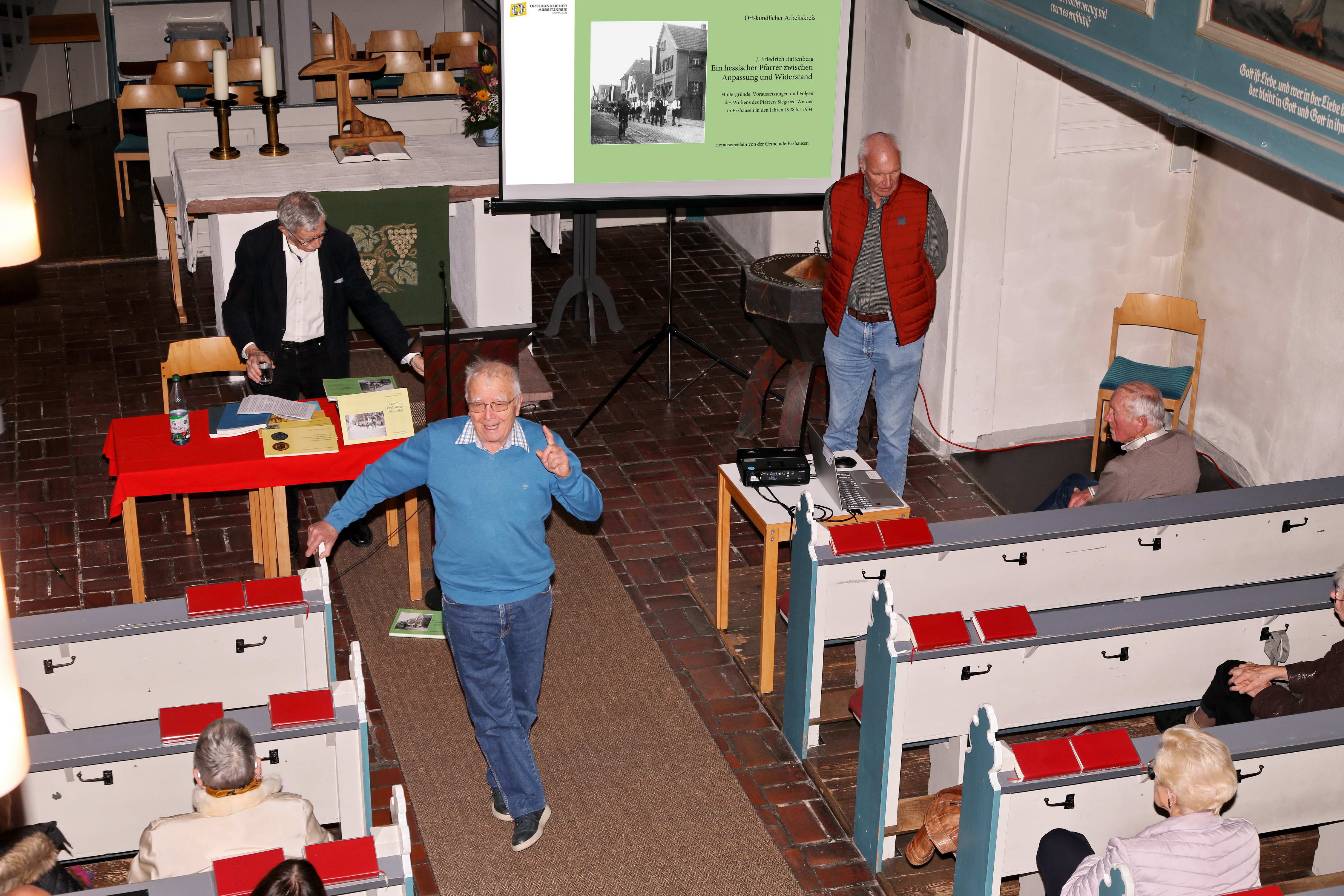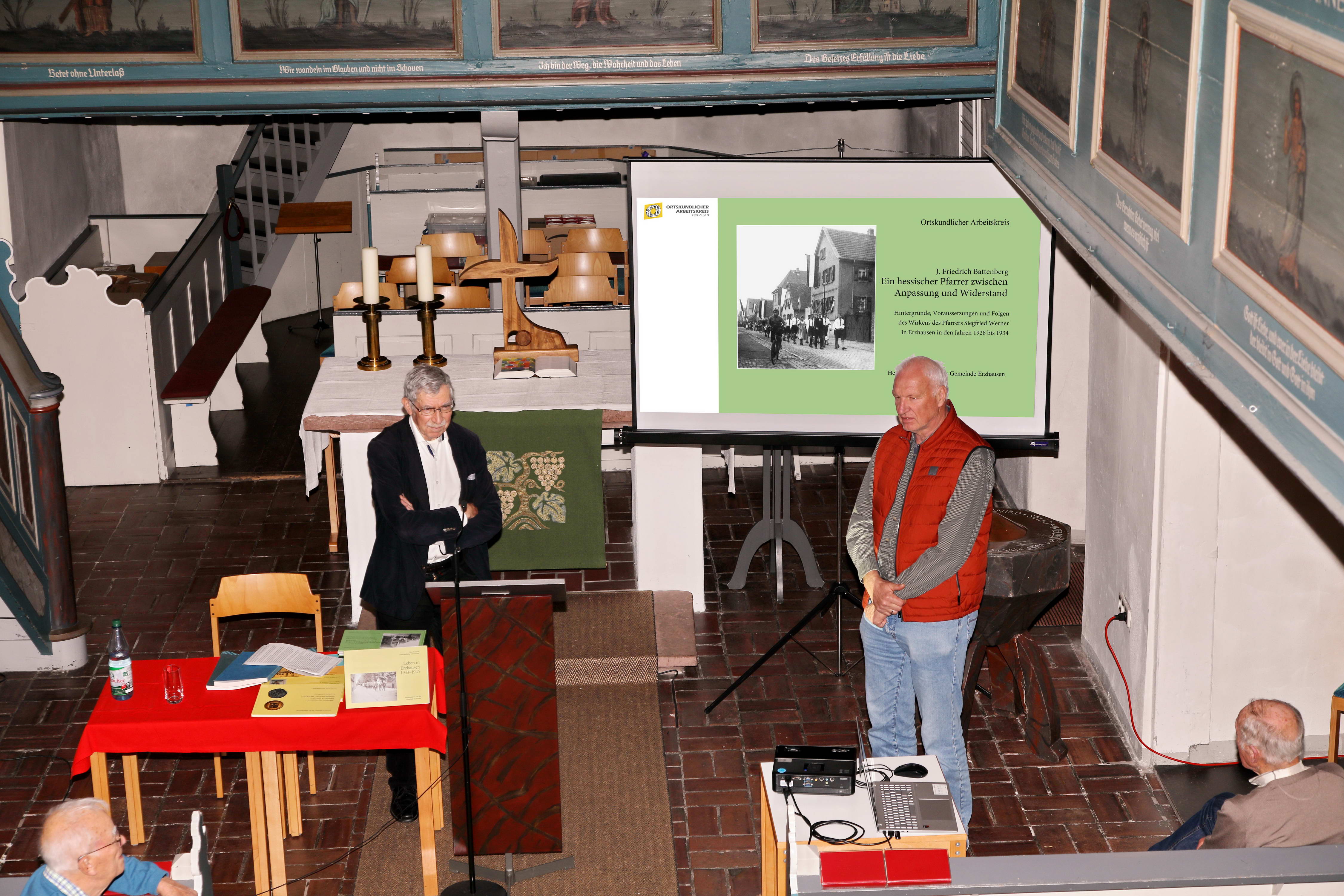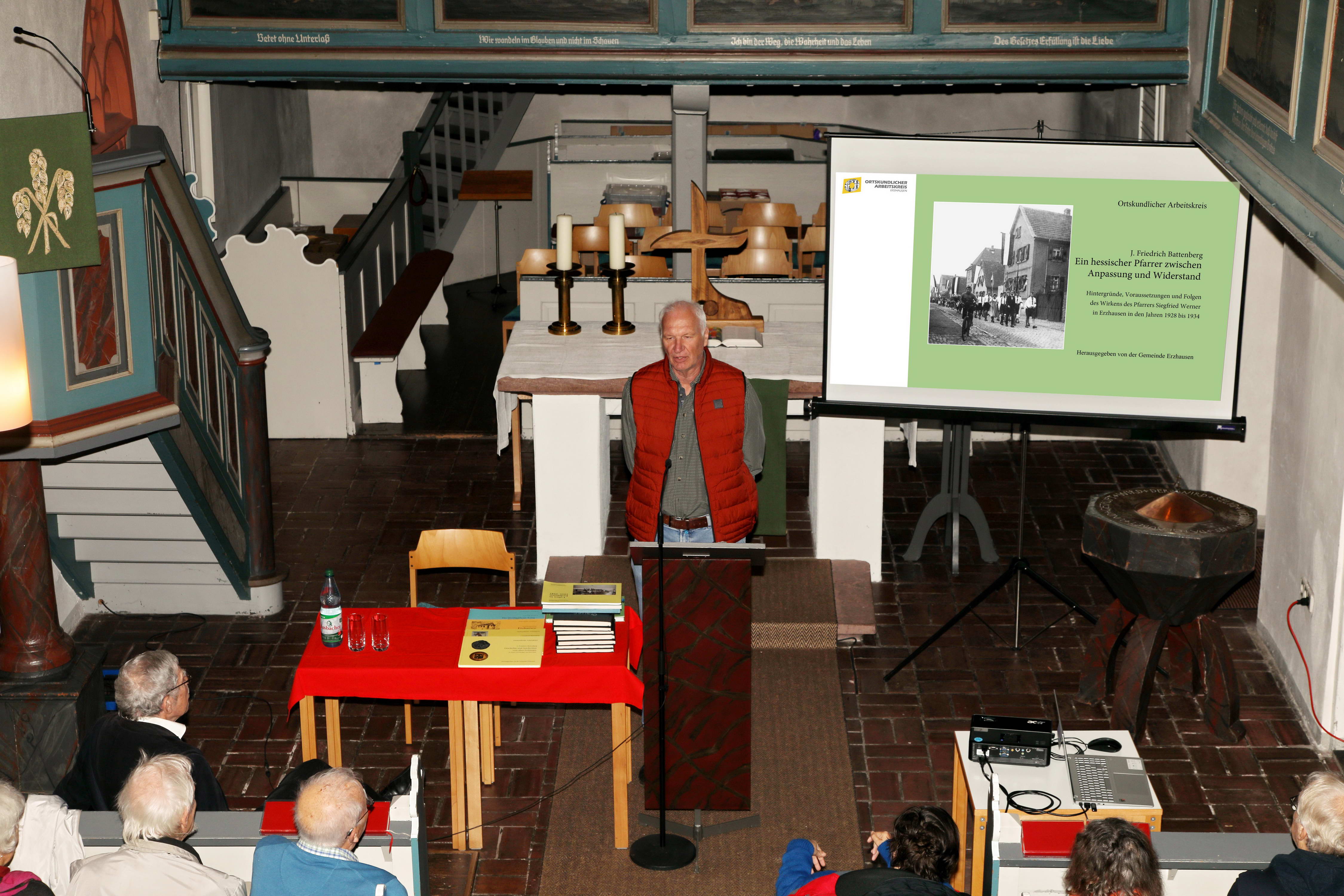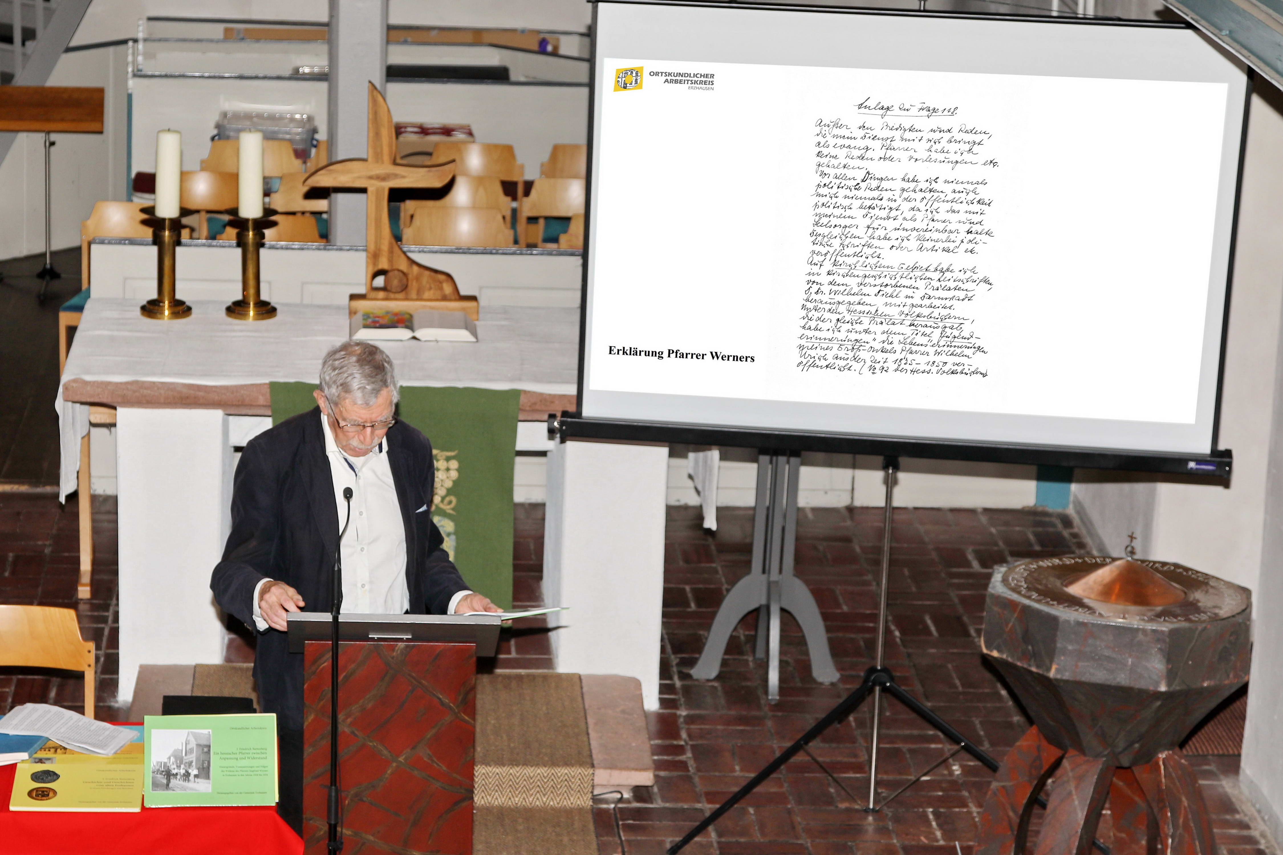 Professor Dr. Friedrich Battenbergs Buch „Ein hessischer Pfarrer zwischen Anpassung und Widerstand – Hintergründe, Voraussetzungen und Folgen des Wirkens des Pfarrers Siegfried Werner in Erzhausen in den Jahren 1928-1934“ ist in Erzhäuser Geschäften zum Preis von 10.- Euro erhältlich. |
