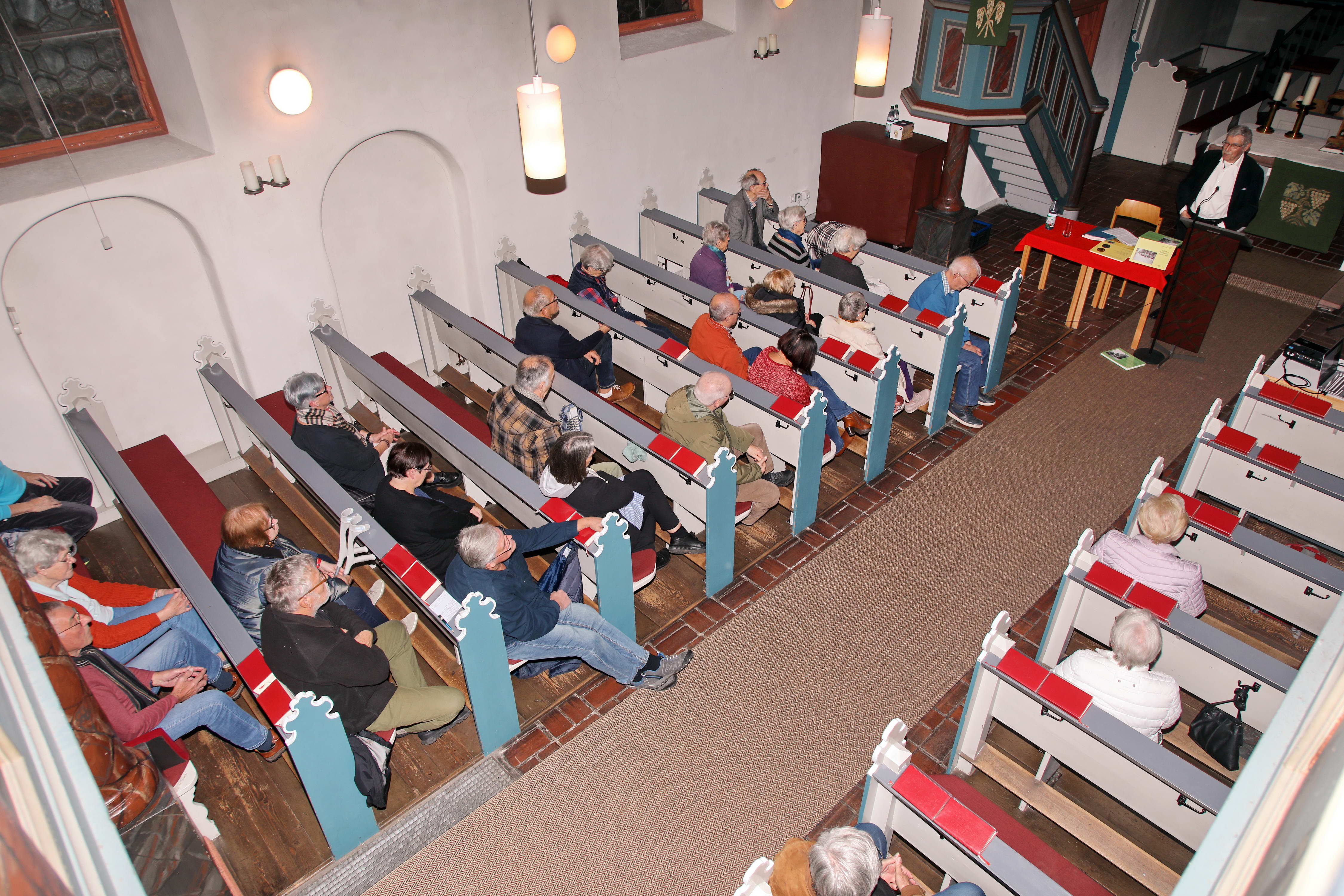 Die ersten Gäste kommen, die Erzhäuser Kirche füllt sich allmählich: |