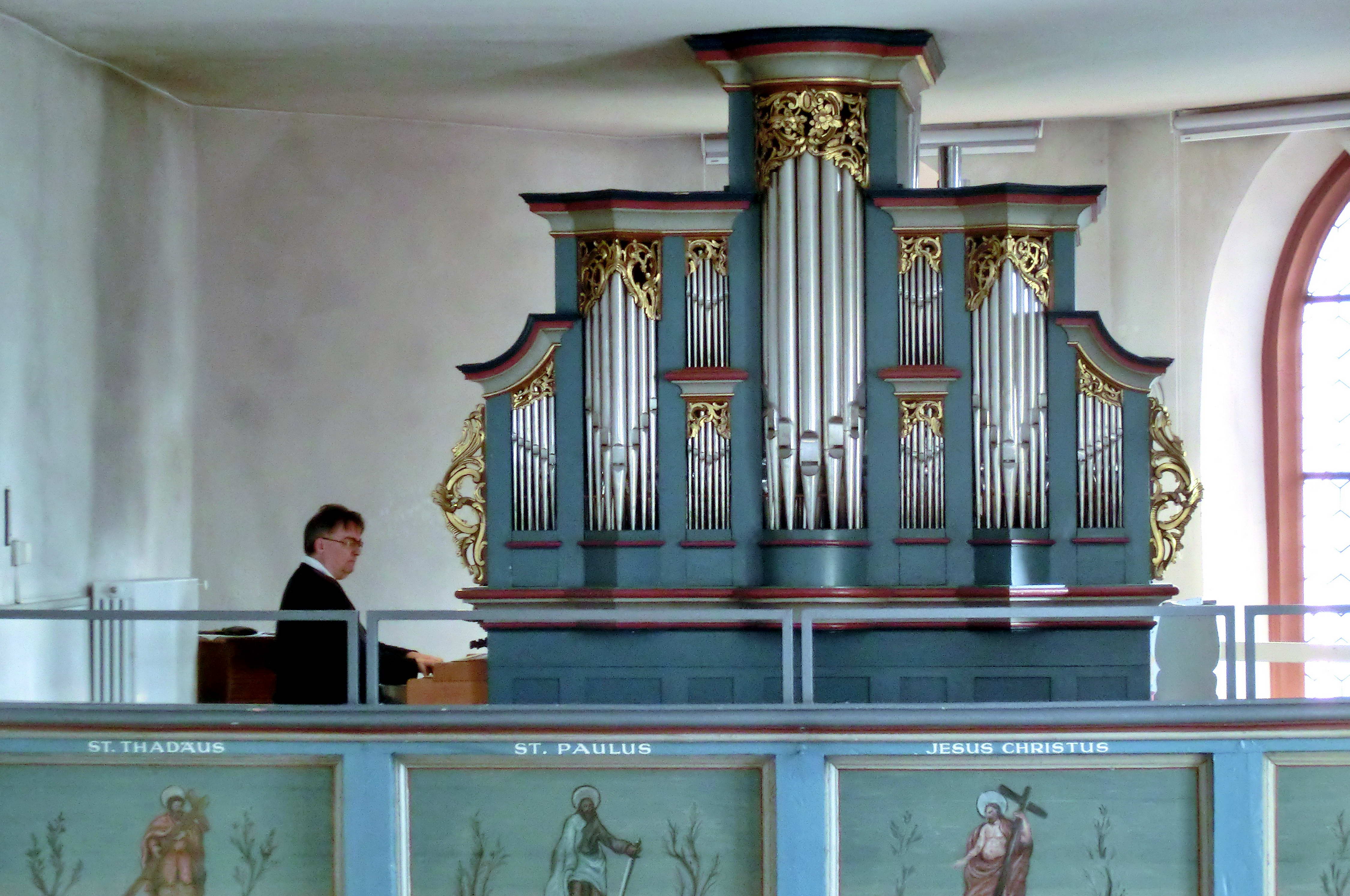 | Um 10 Uhr begann die Veranstaltung mit Orgelmusik, gespielt vom Organisten Herrn van Hees. Darauf folgte ein Liedvortrag des Männergesangvereins MGV Sängerbund-Sängerlust unter der Leitung von Paul Weber: |