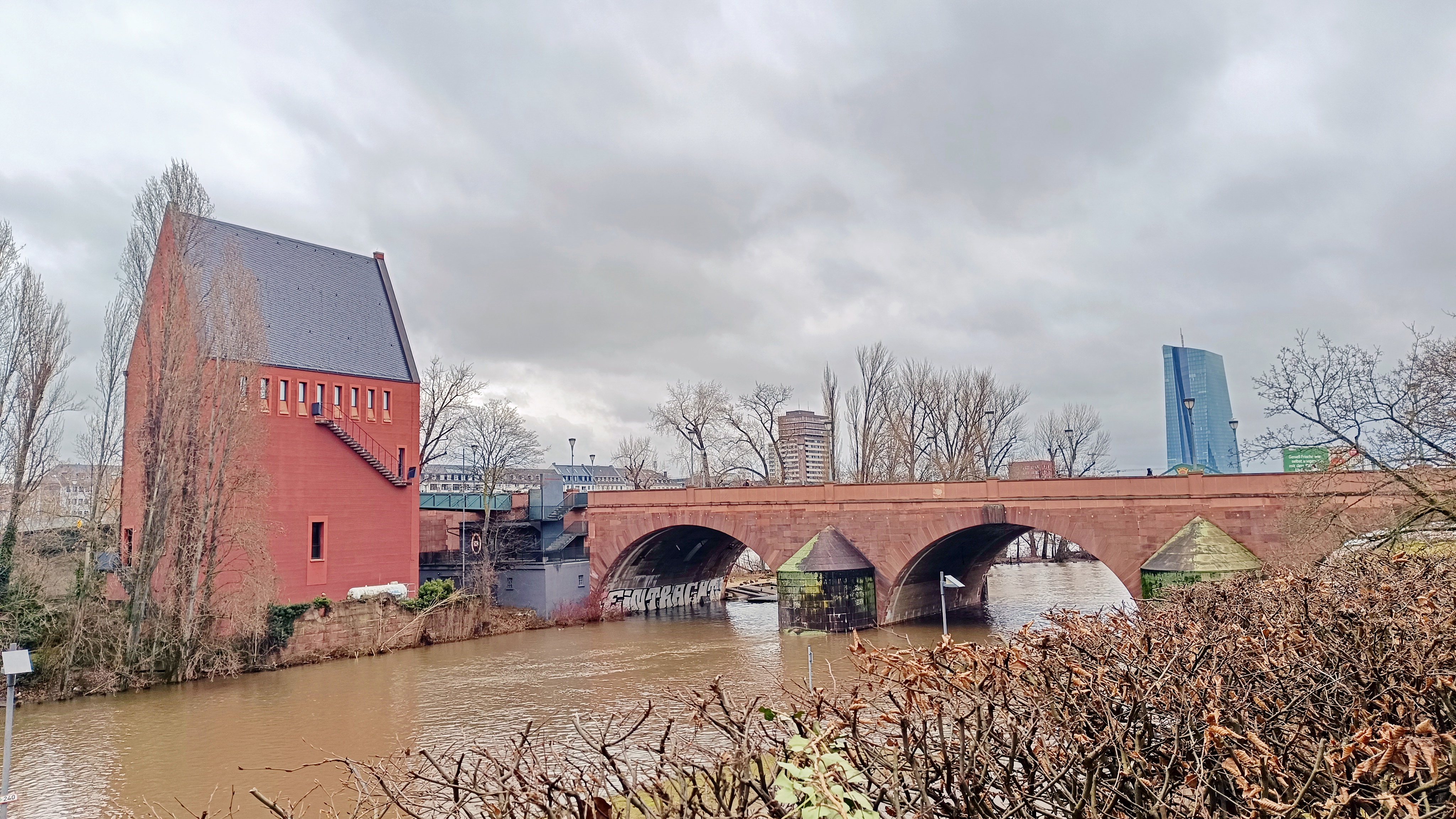 Blick über den Main zur City von Frankfurt:
