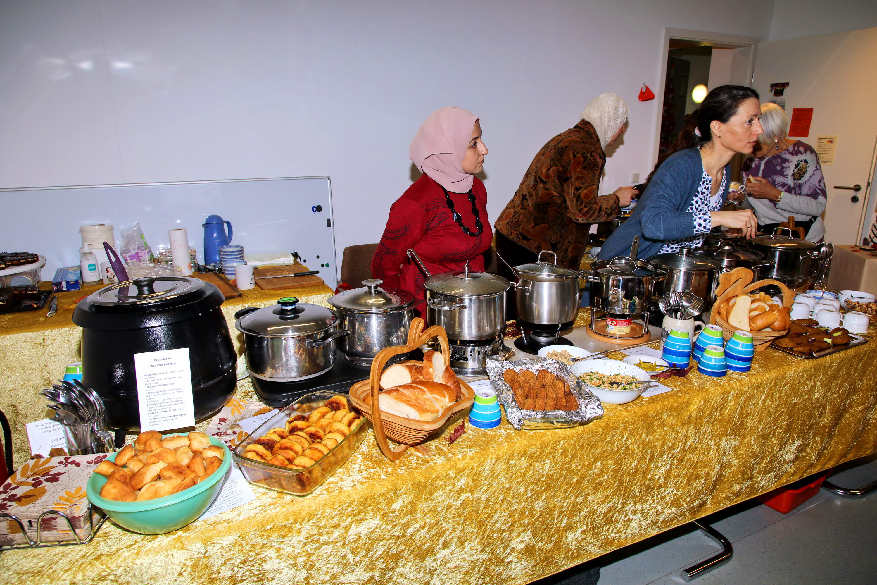 Obergeschoß waren die 15 verschiedenen Suppen auf Warmhalteplatten aufgebaut.