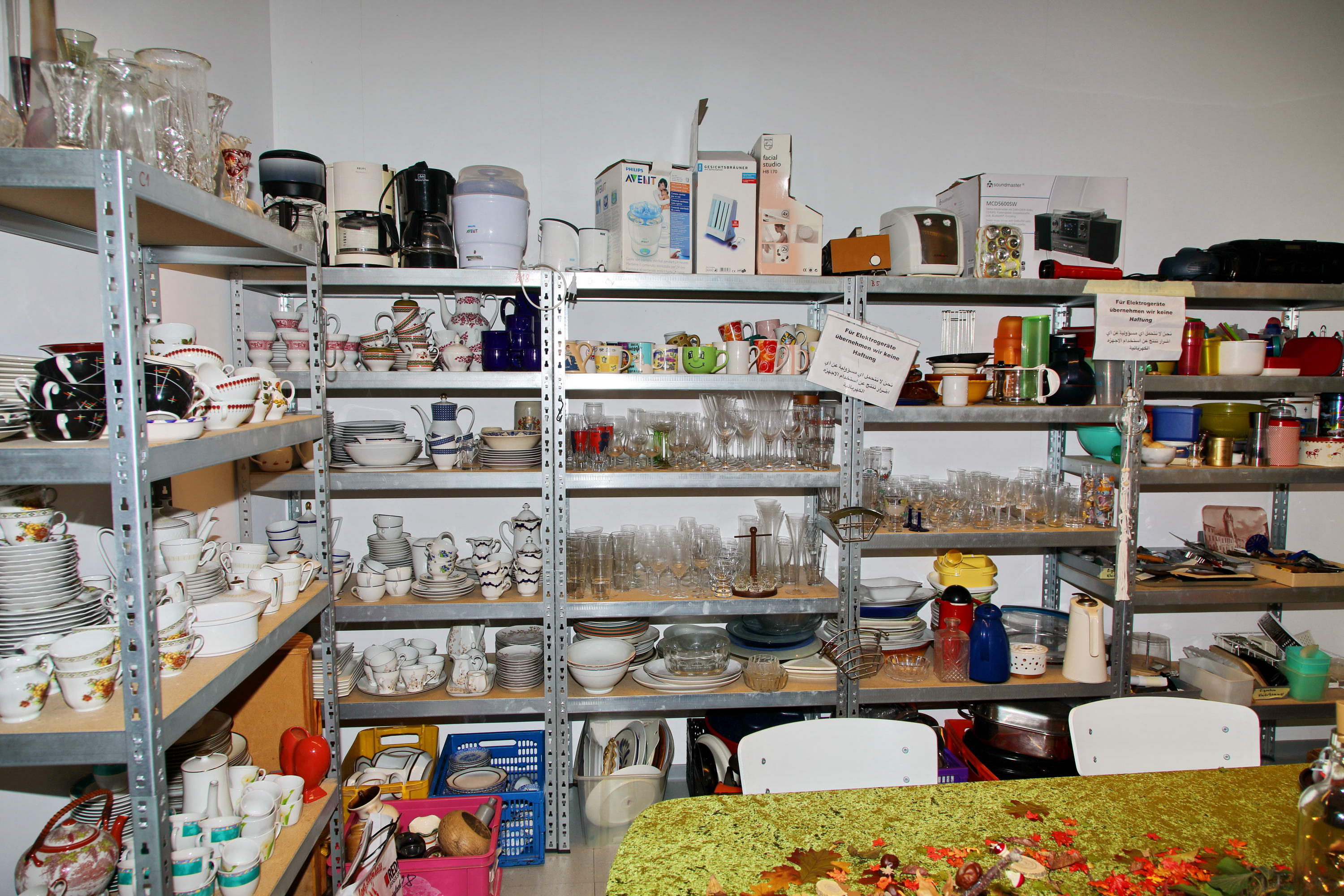 Wer mit dem Probieren der Suppen fertig war, konnte sich auch einmal in den umliegenden Räumen umsehen. Dabei wurde schnell deutlich, dass man sehr viele Spenden erhalten hat, dass aber gleichzeitig die Abgabe nicht im gleichen Maße angestiegen ist. Die Räume sind proppevoll, man will deshalb vorläufug keine weiteren Kleider- und andere Spenden mehr annehmen. Deutlich wird das auch bei