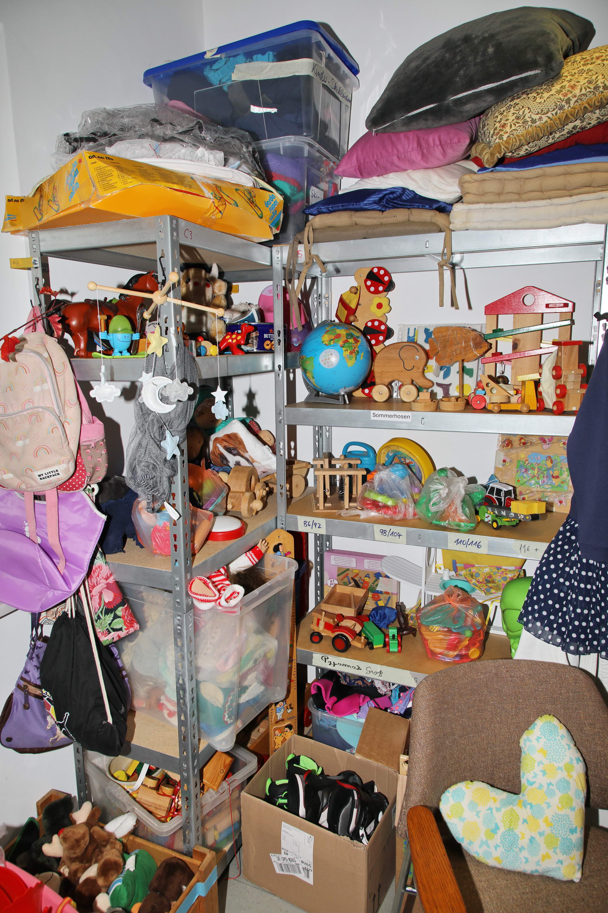 einem Blick in die Räume mit Haushaltsgegenständen und mit Spielzeug: |