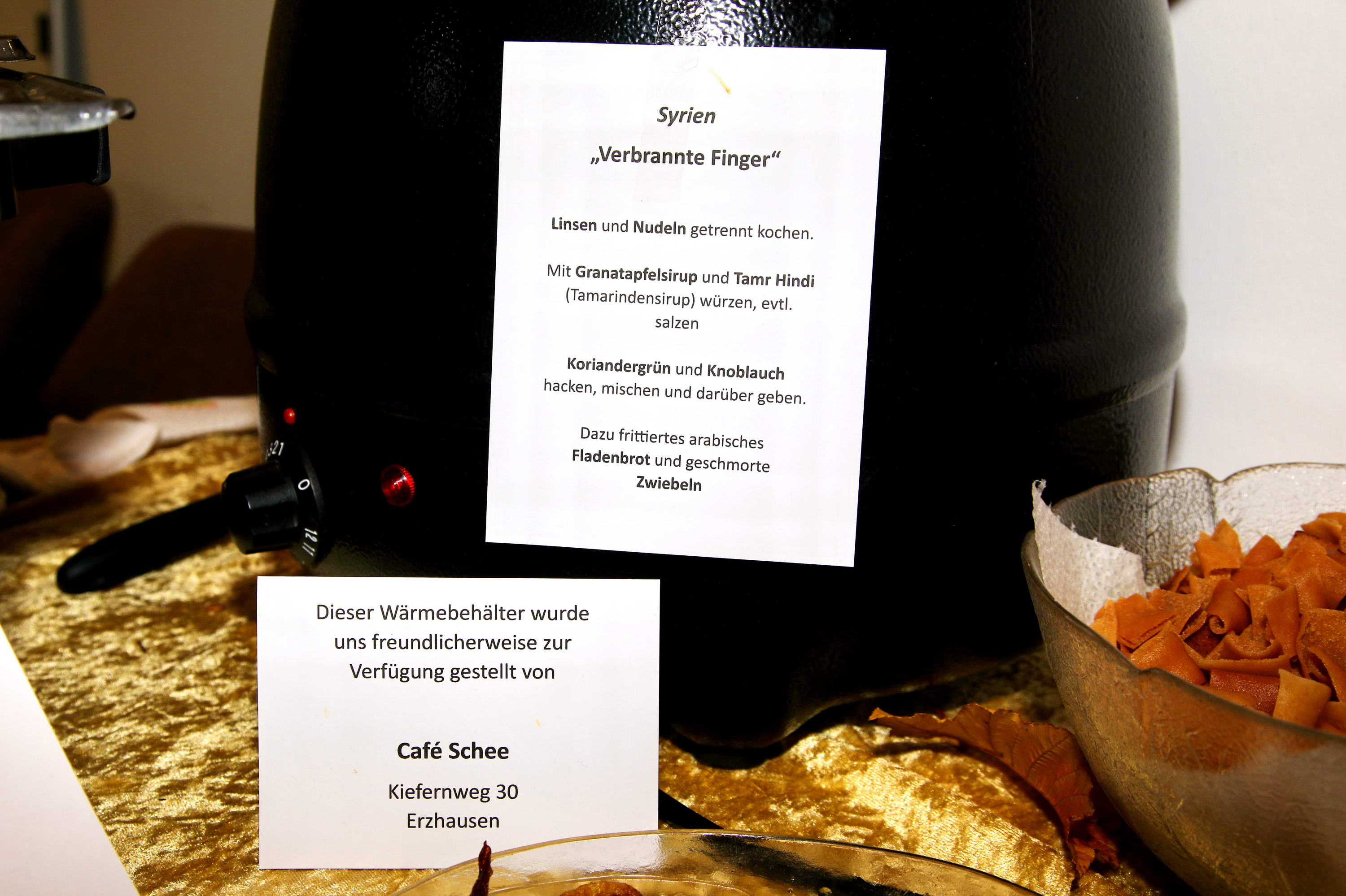 Bei Jeder Suppe stand ein Schild mit dem Suppennamen und ein zweites Schild, auf