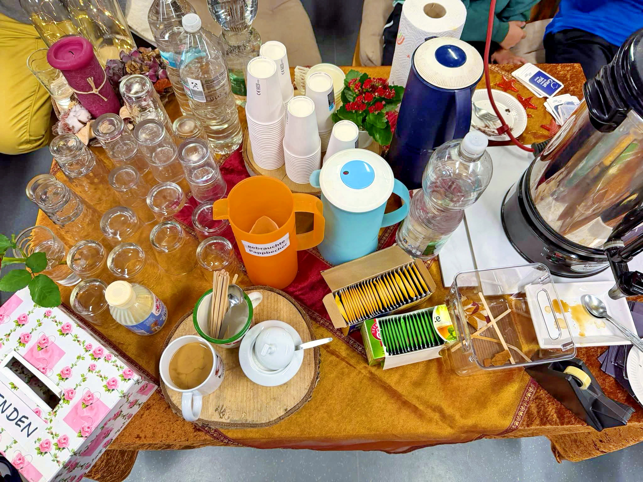 An einem kleinen Tisch gab es kalte und warme Getränke: