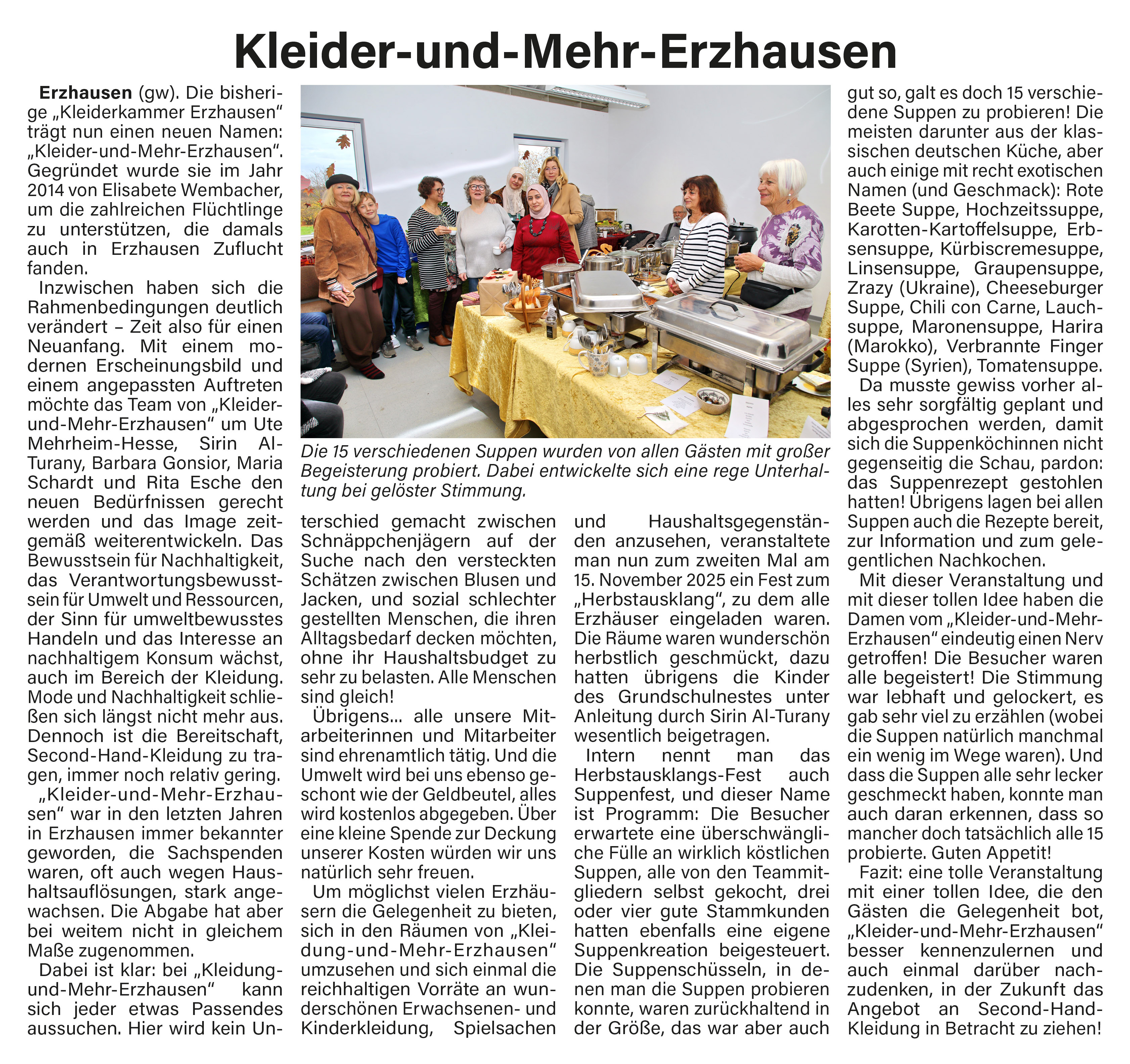 Artikel im Erzhäuser Anzeiger vom 20. November 2025 von Georg Weber: |