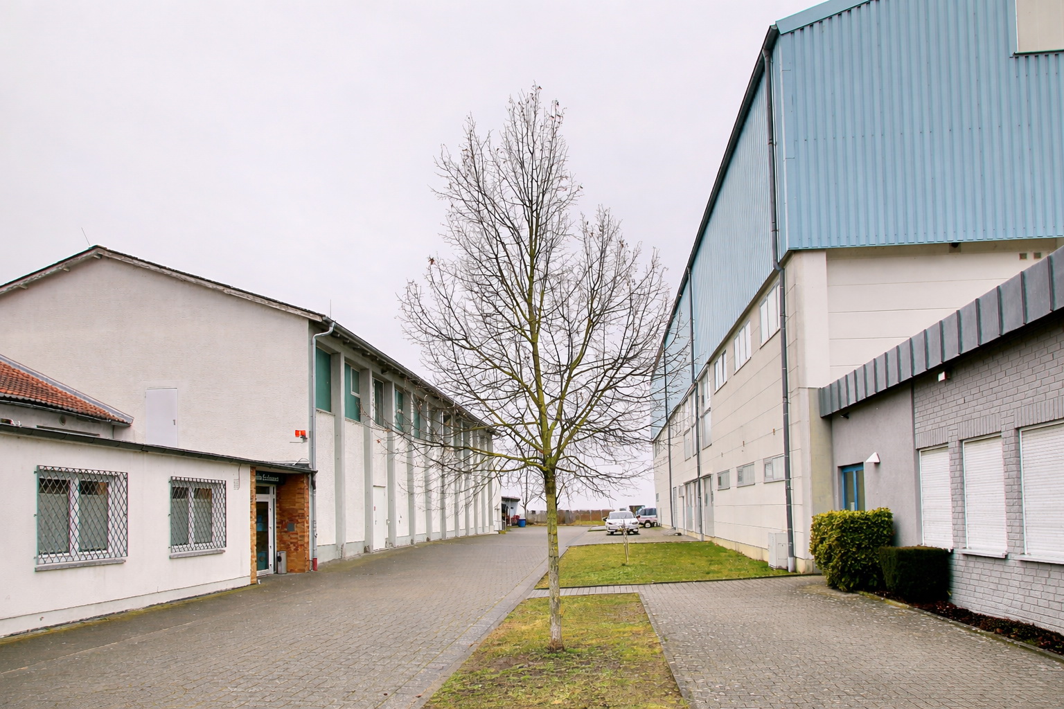 | Die Winterlinde am 21. Februar 2026 zwischen Sportheim und Großsporthalle: |