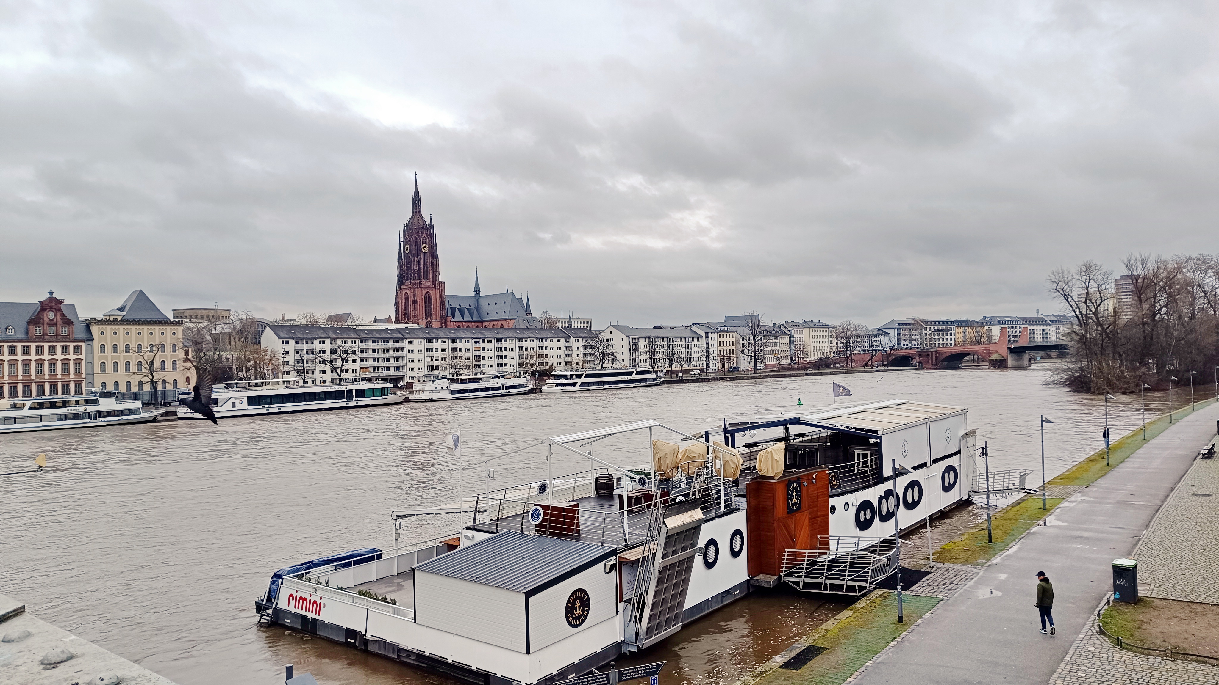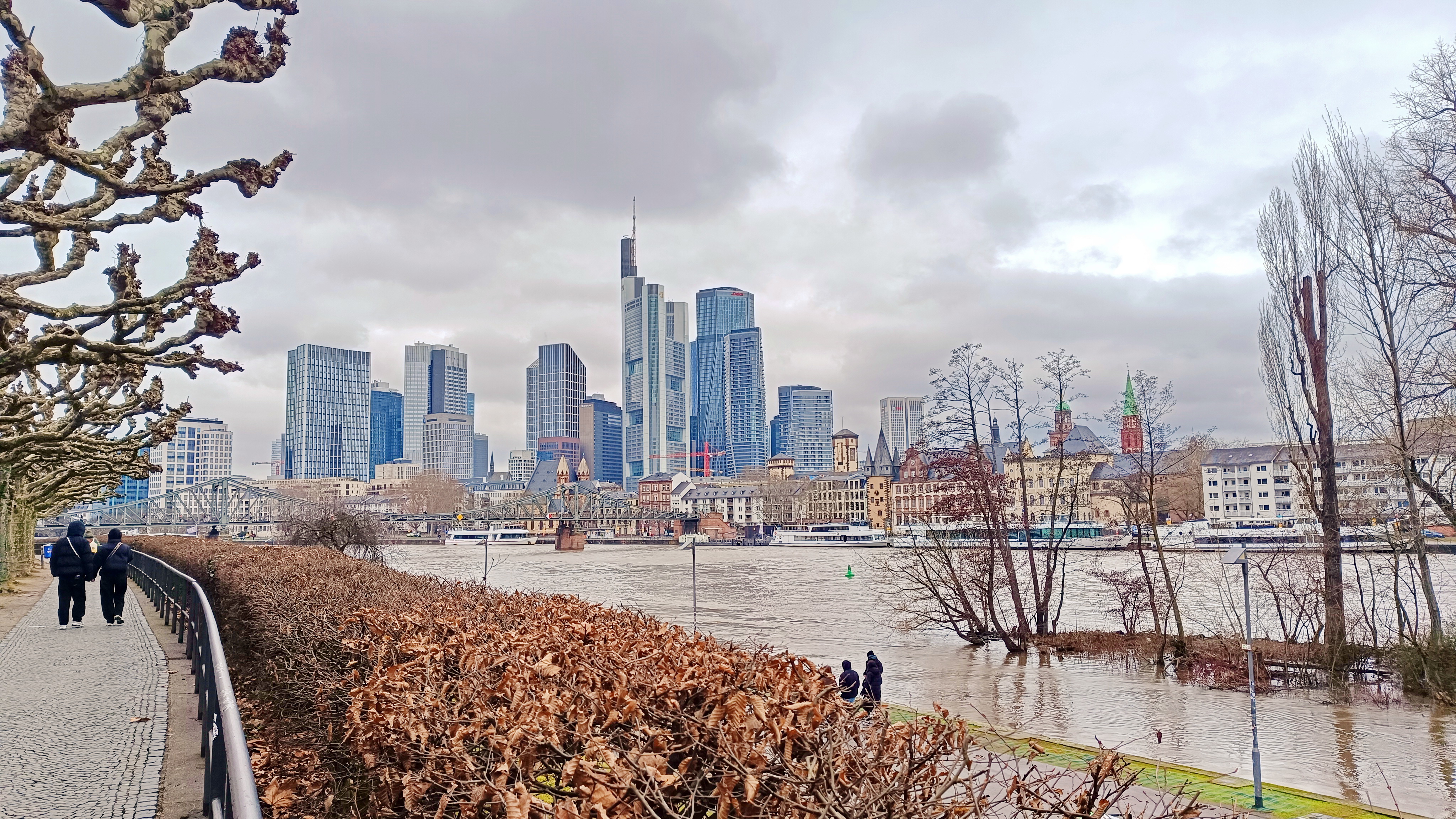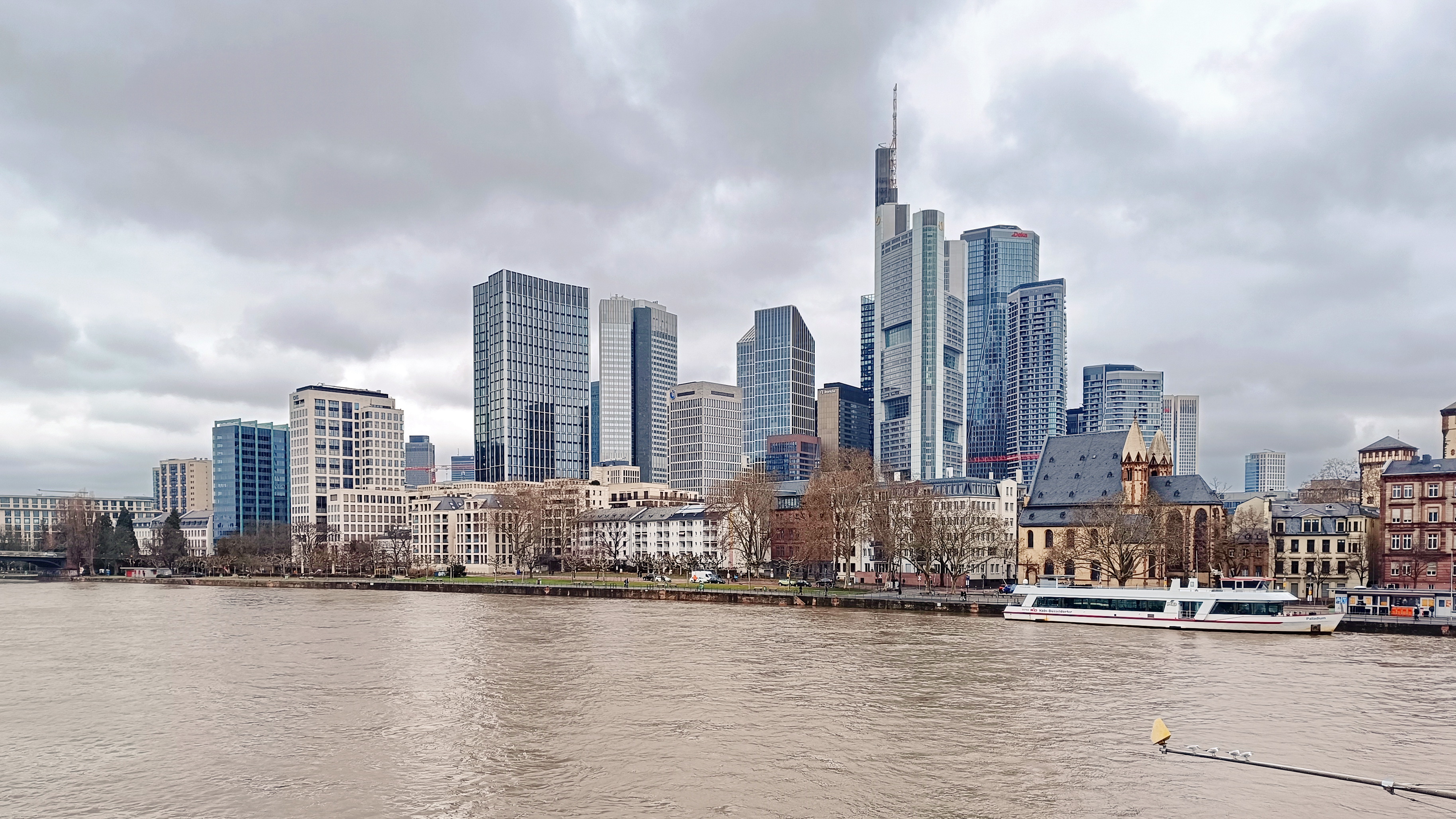 Blick über den Main zur City von Frankfurt: