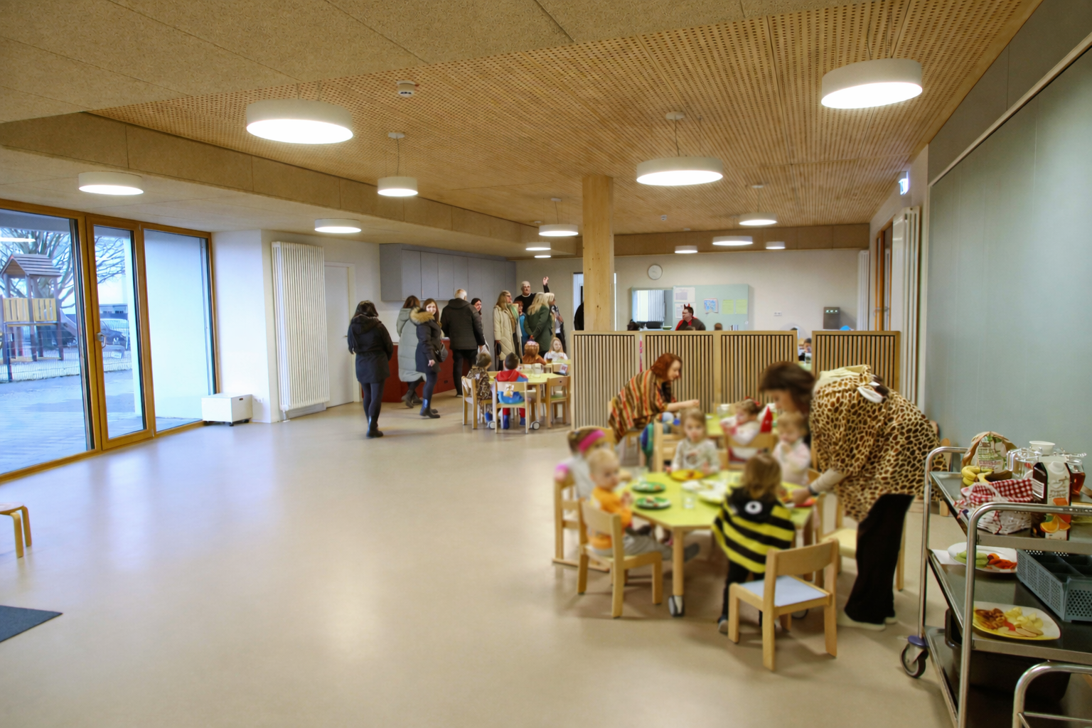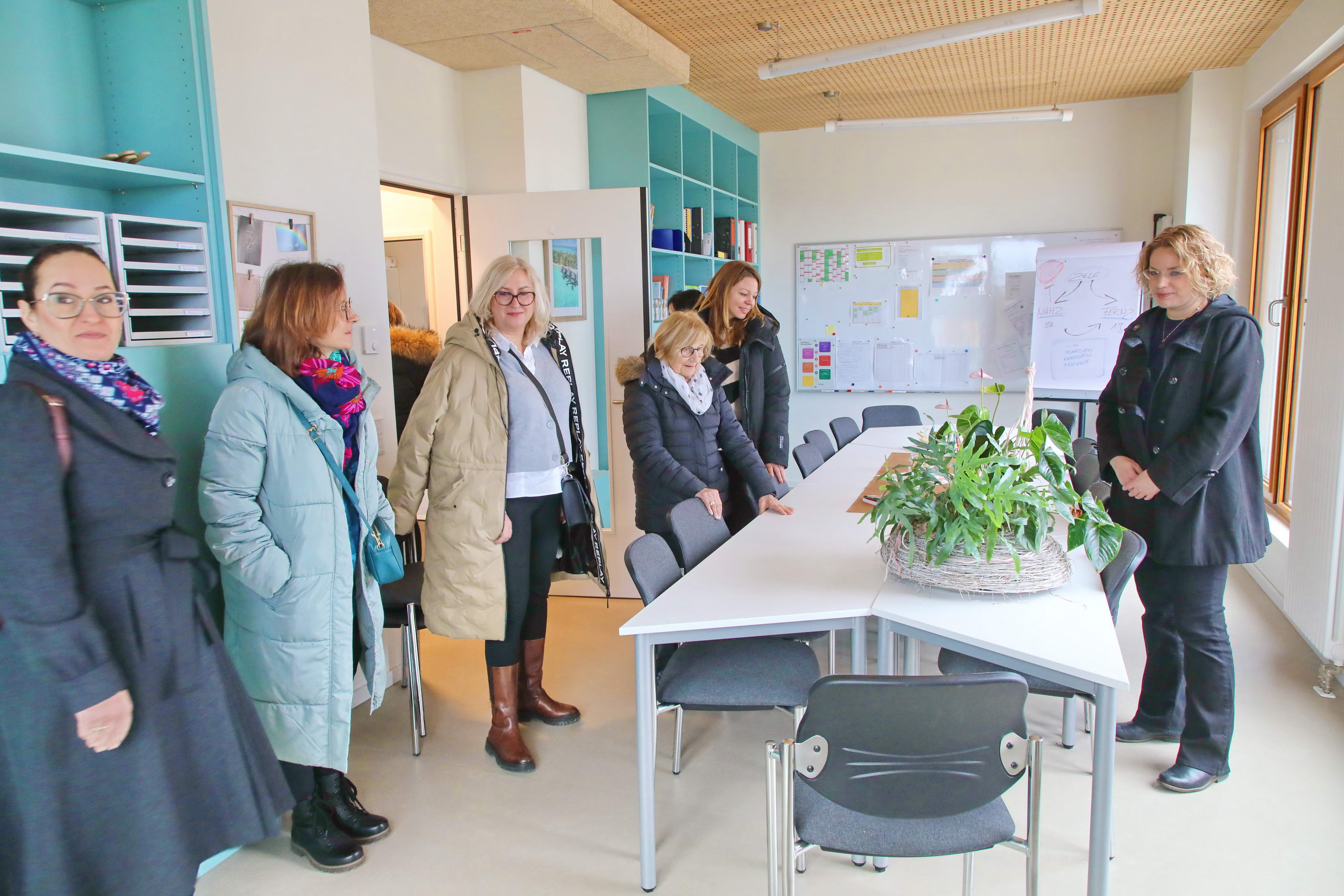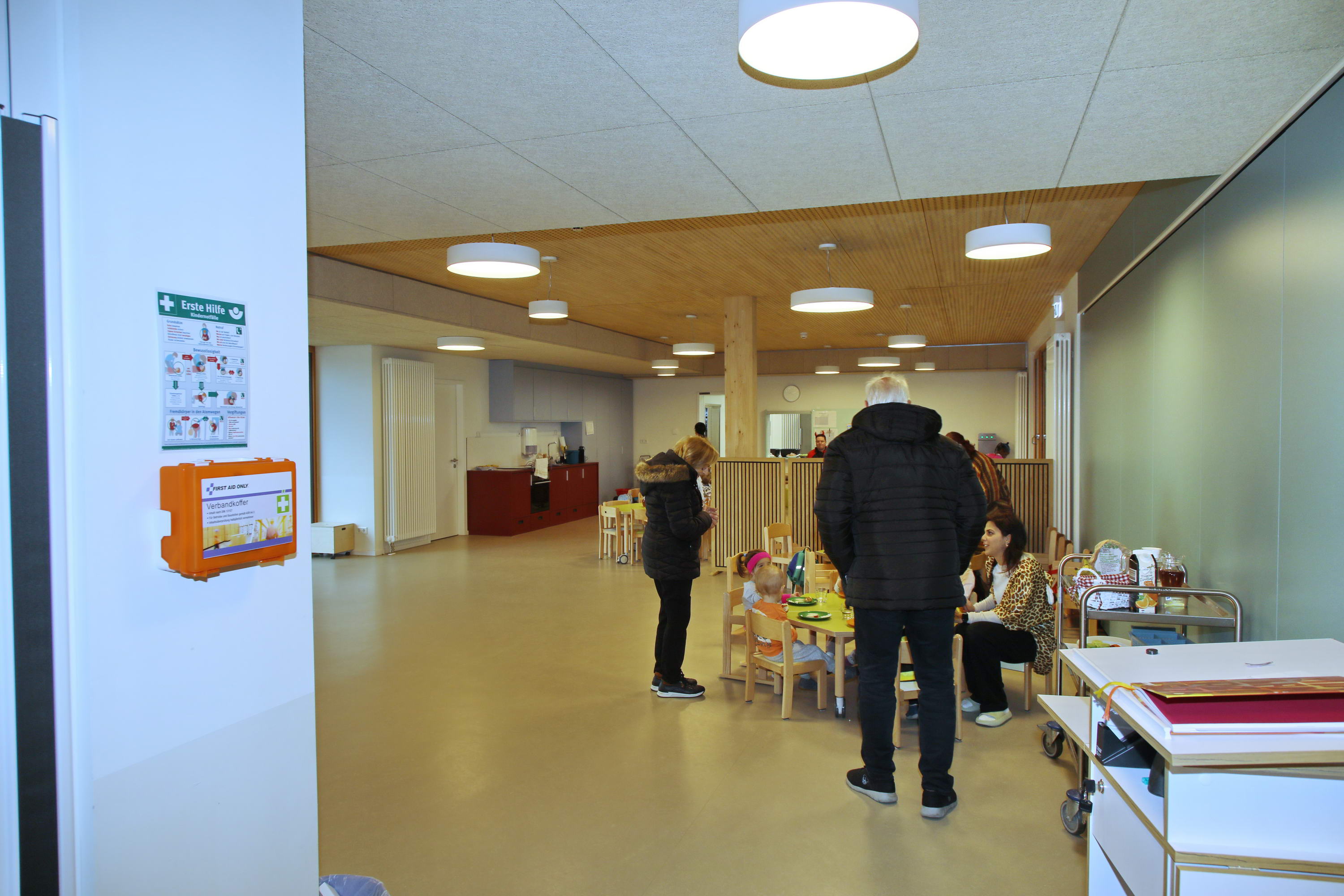 Ursprünglich hatten die Gäste geplant, direkt nach diesem Abschiedsfrühstück die Heimfahrt anzutreten. Bei den Gesprächen während des Frühstücks kam aber der Wunsch auf, doch noch schnell einen Besuch in der neuen Kita „Am Hainpfad“ zu machen. Diesem Wunsch kamen Claudia Lange und der PVE gerne nach: