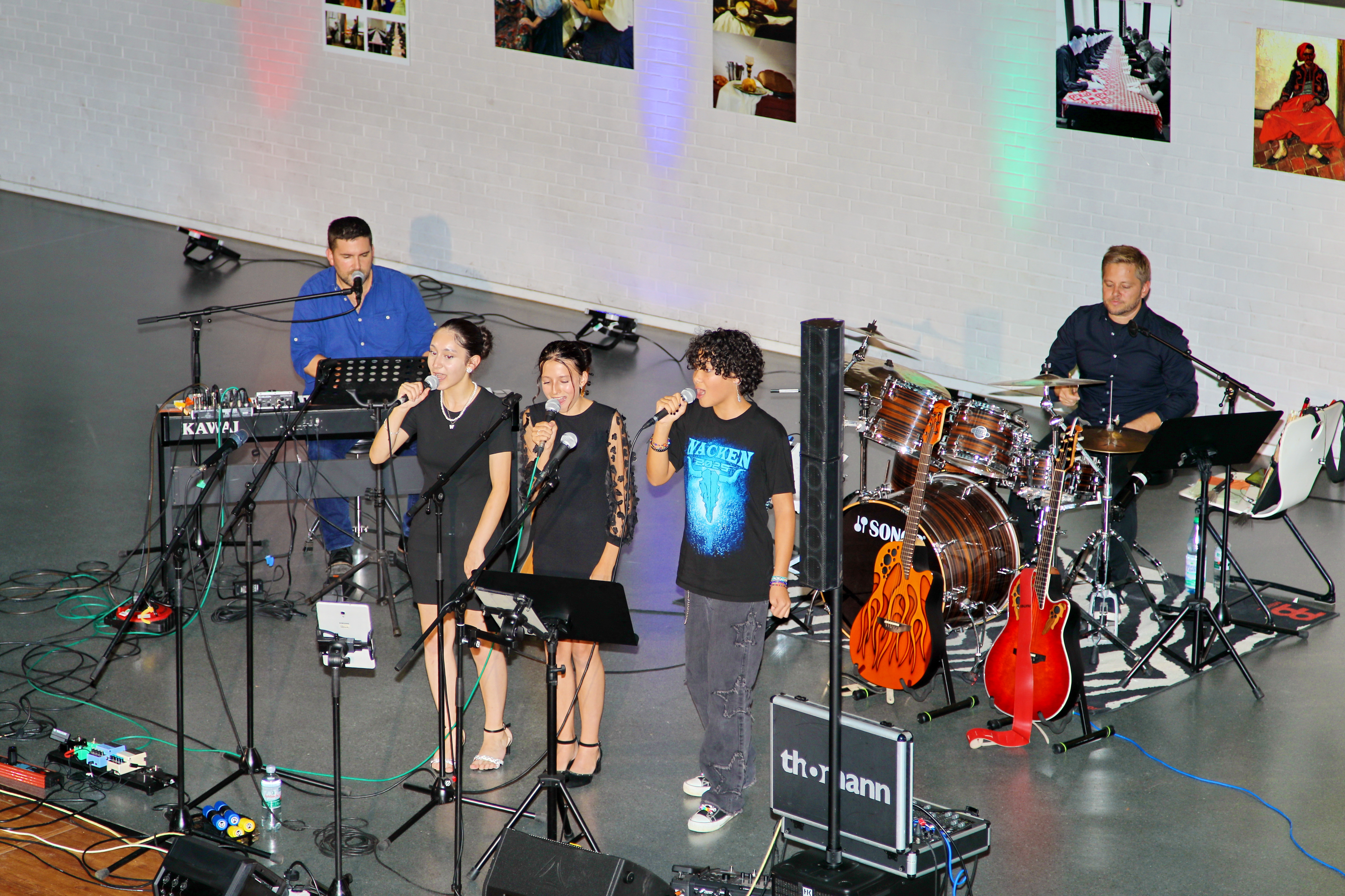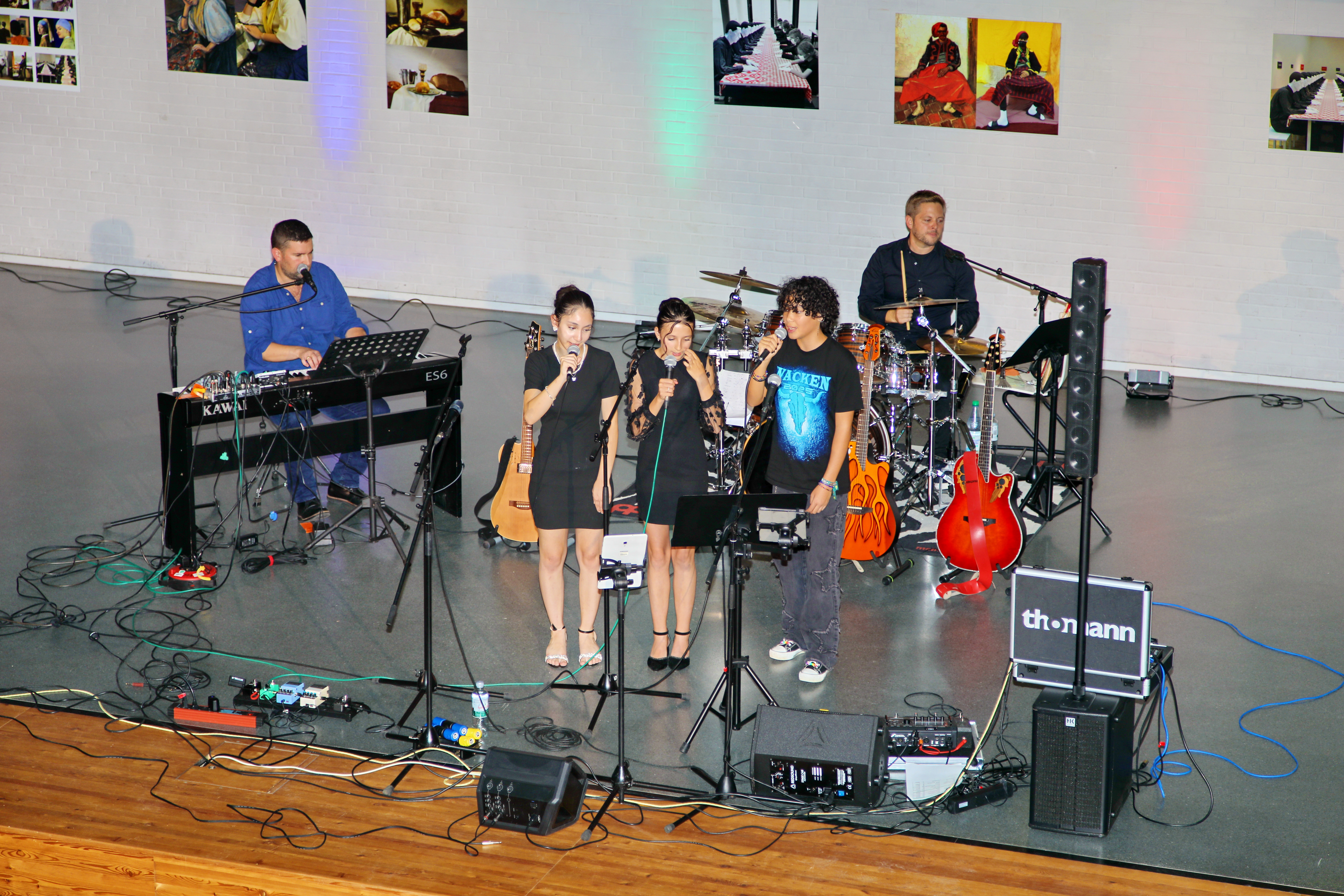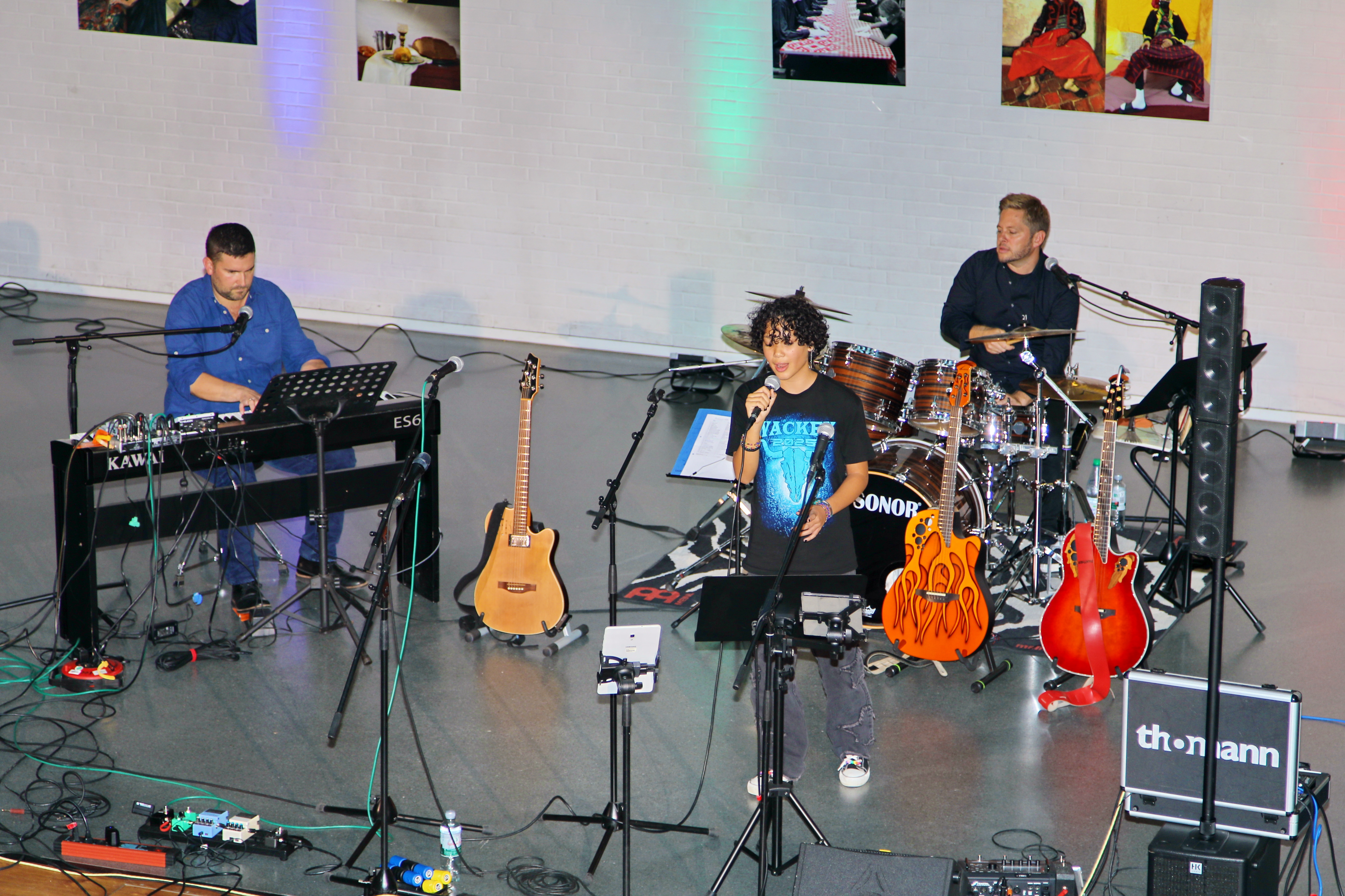 beeindruckenden Auftritt dreier SchülerInnen. Sie wurden musikalisch begleitet durch zwei Lehrer des Musikprojekts der HWS (der Auftritt war übrigens auch optisch sehr bemerkenswert): |