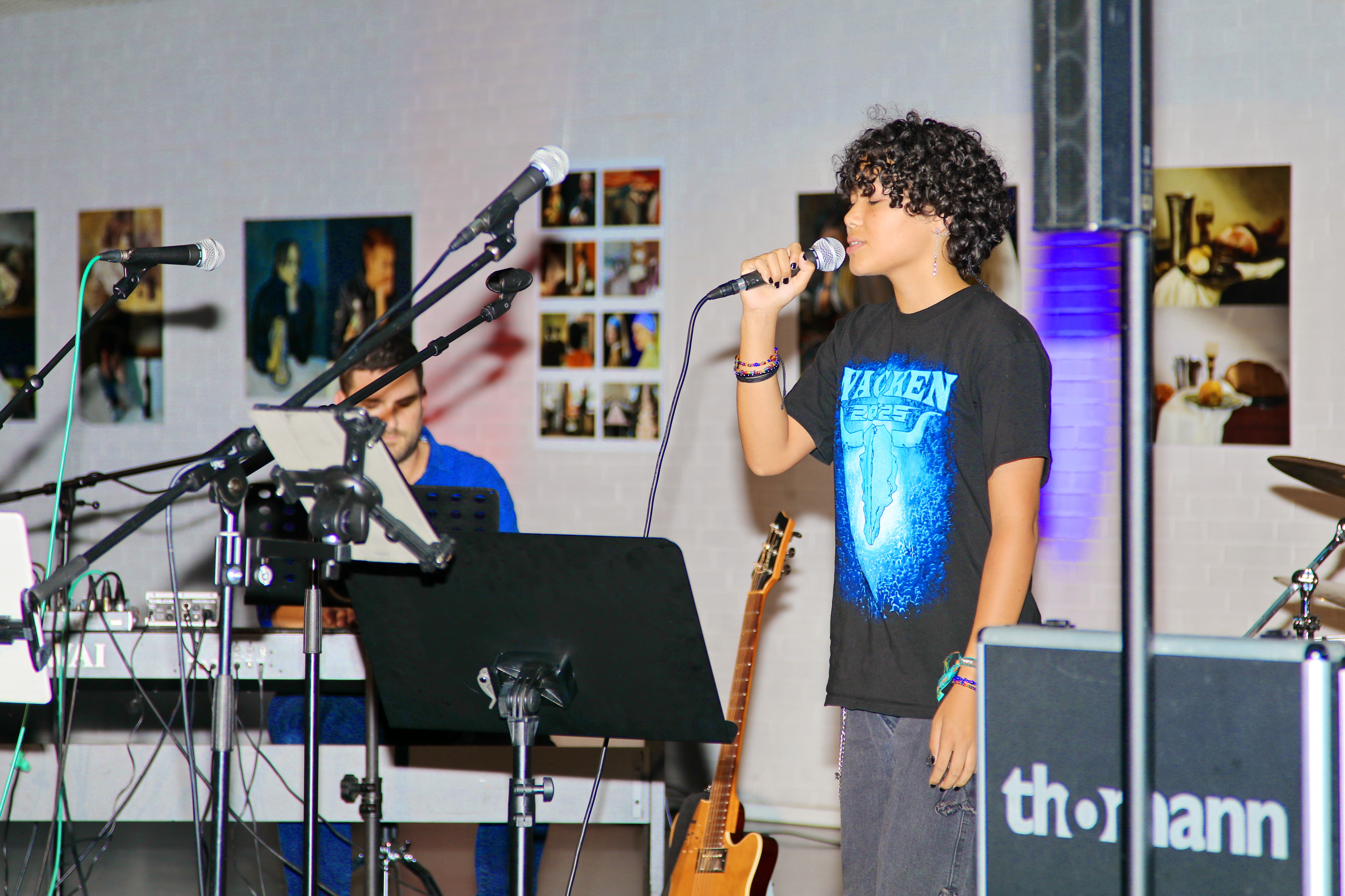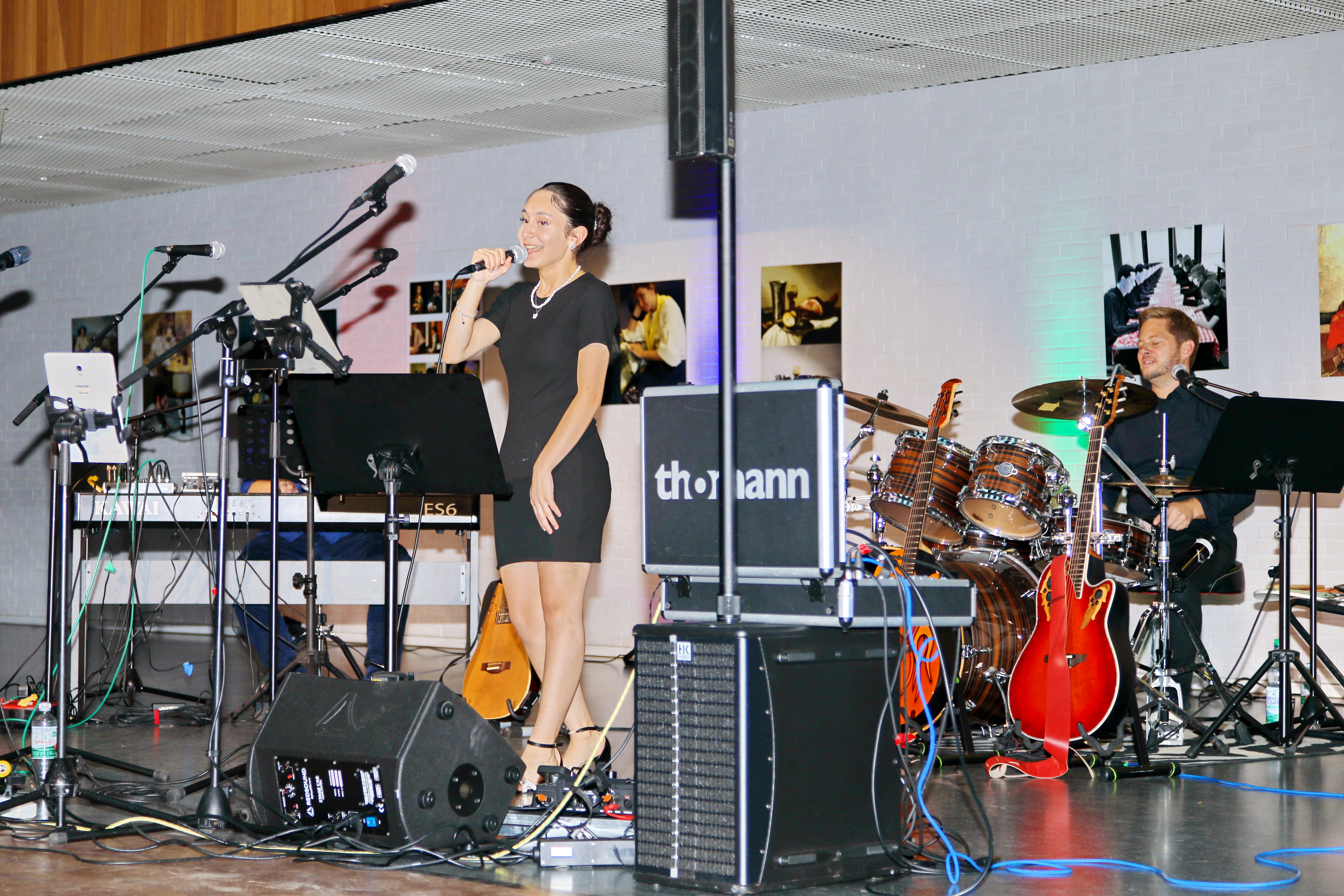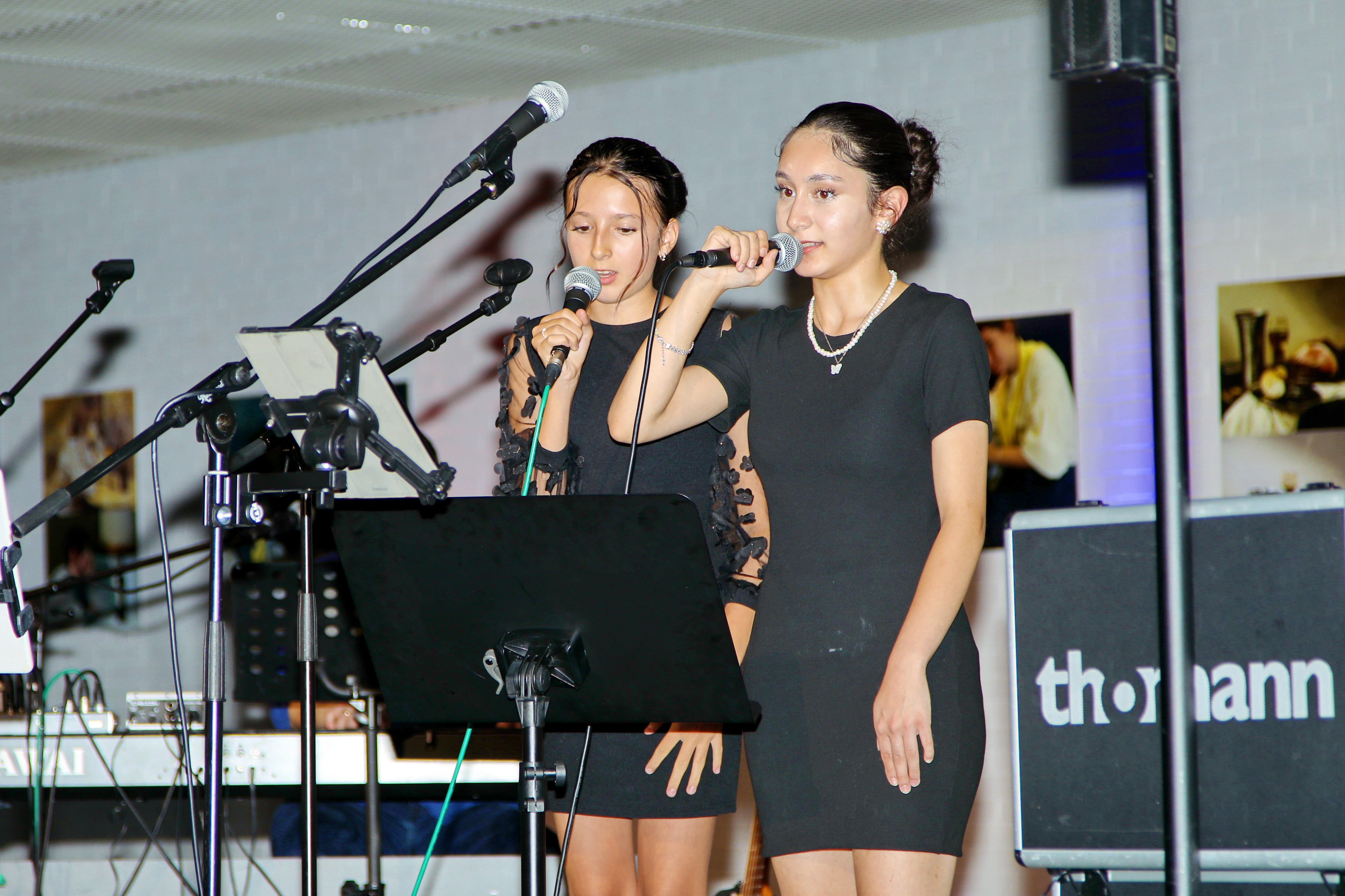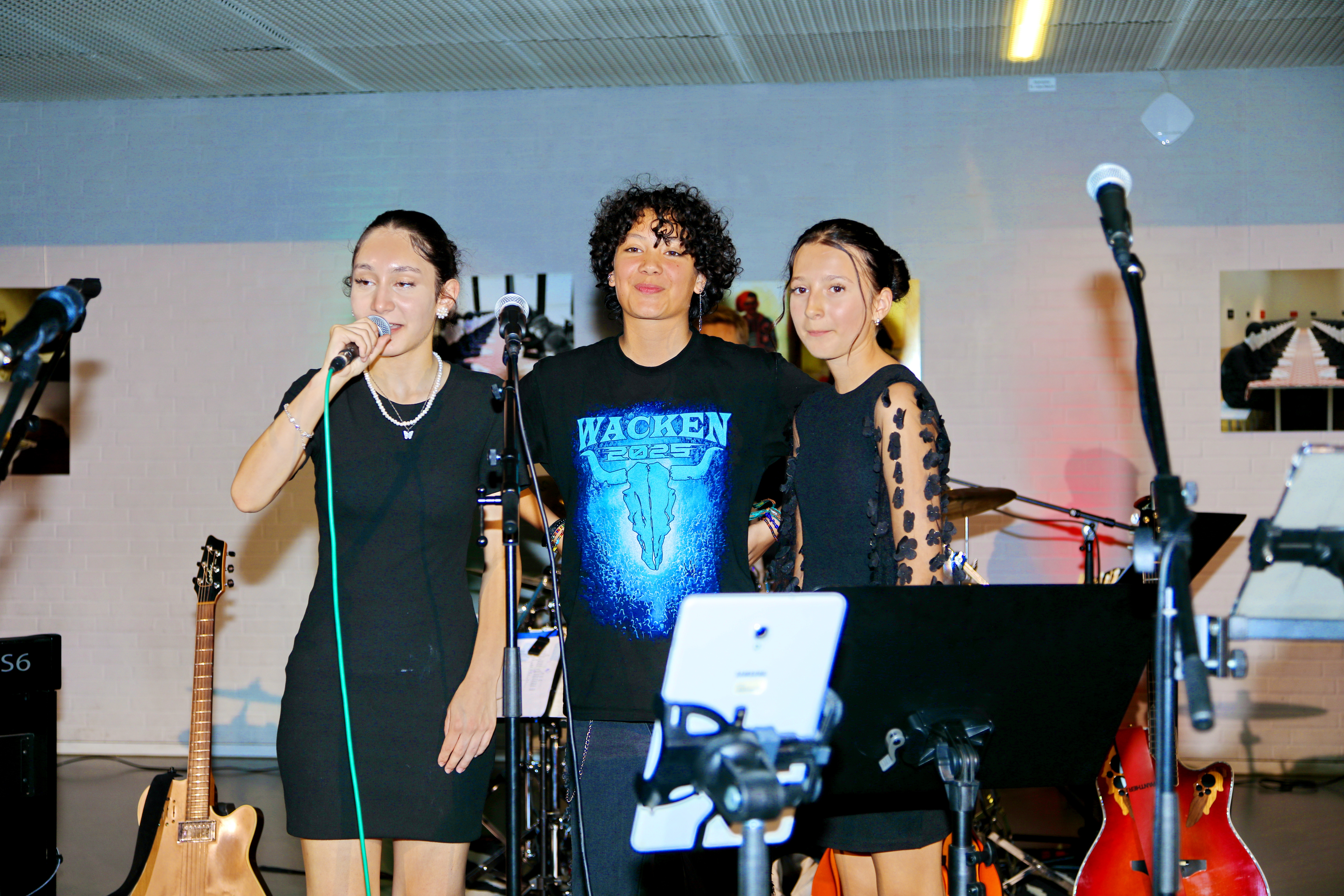 beeindruckenden Auftritt dreier SchülerInnen. Sie wurden musikalisch begleitet durch zwei Lehrer des Musikprojekts der HWS (der Auftritt war übrigens auch optisch sehr bemerkenswert): |