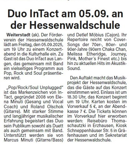 Einleitung: Konzert in der Hessenwaldschule mit dem Schulprojekt der HWS und der Band Duo InTact |